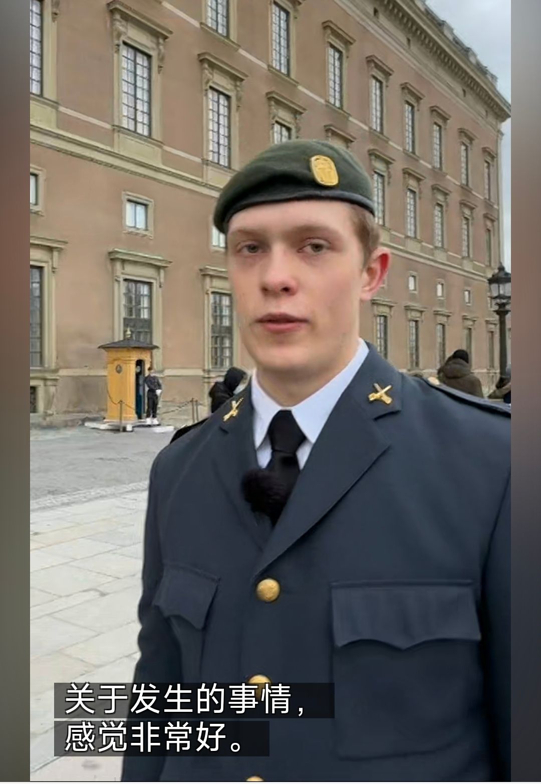 听听骑兵团士兵维戈·斯特兰德贝里(Viggo Strandberg)和安德烈亚斯·福克斯(Andreas Fuchs)回忆——上周五深夜在斯德哥尔摩歌剧院附近,一名年轻女子跌入冰冷河水,他们参与了营救。照片:SVT