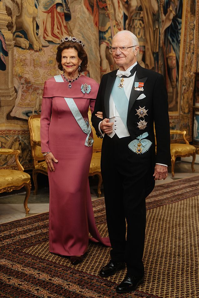 国王与王后随后抵达王宫宴会厅区域,为晚宴正式入场。