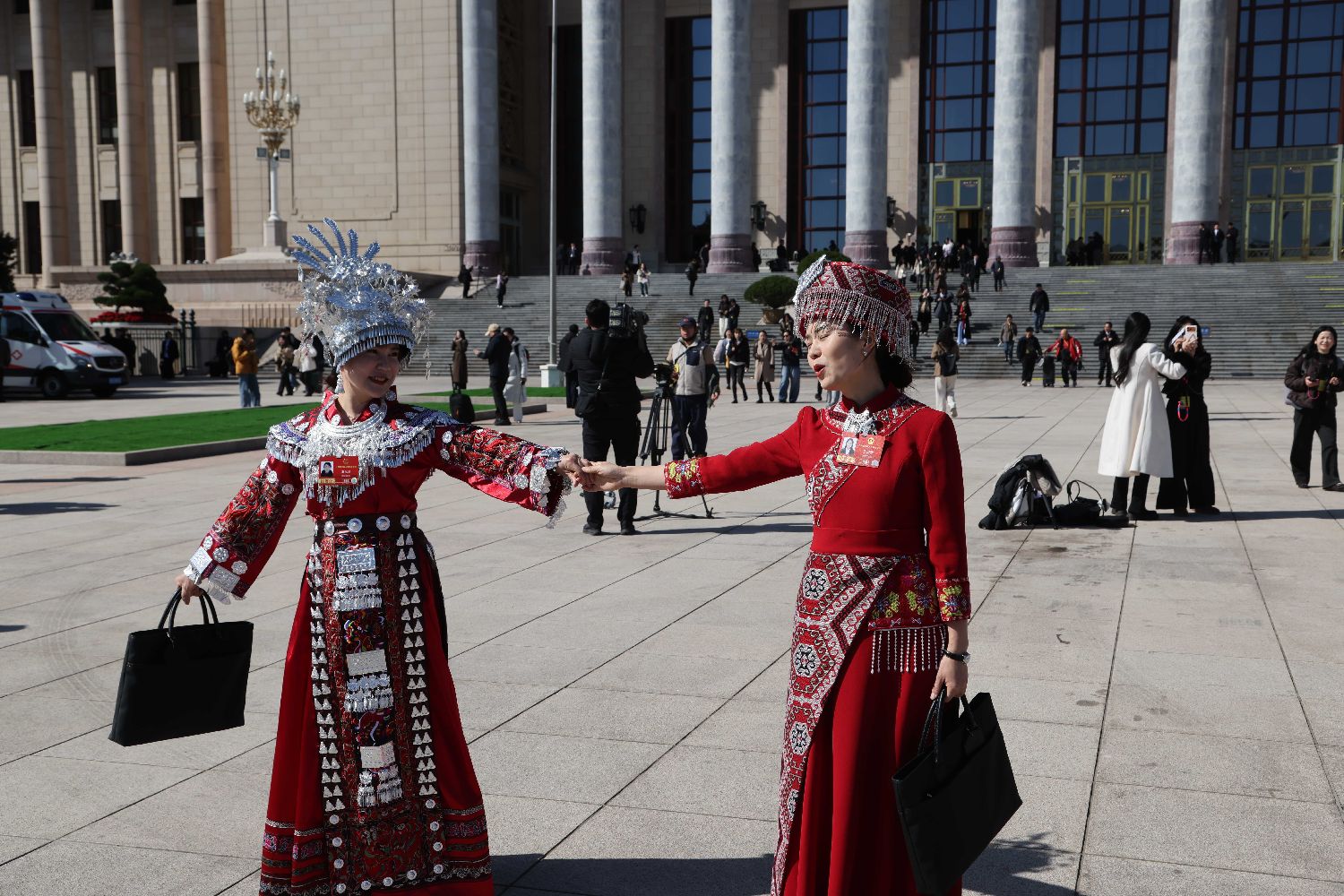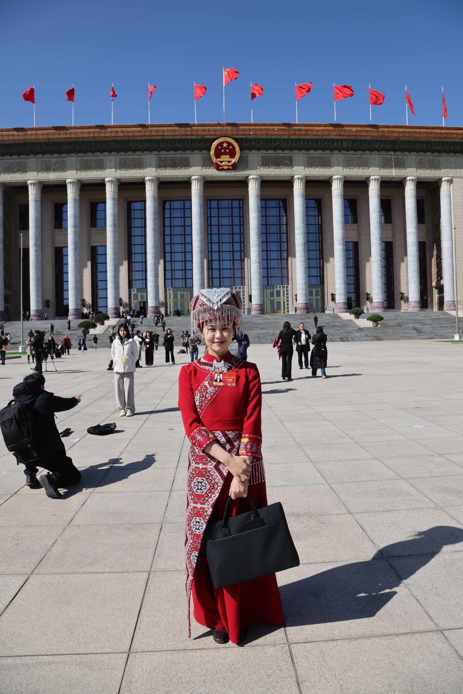 站在人民大会堂前,看着这位身穿民族服装的年轻代表,我突然意识到一个有趣的象征。