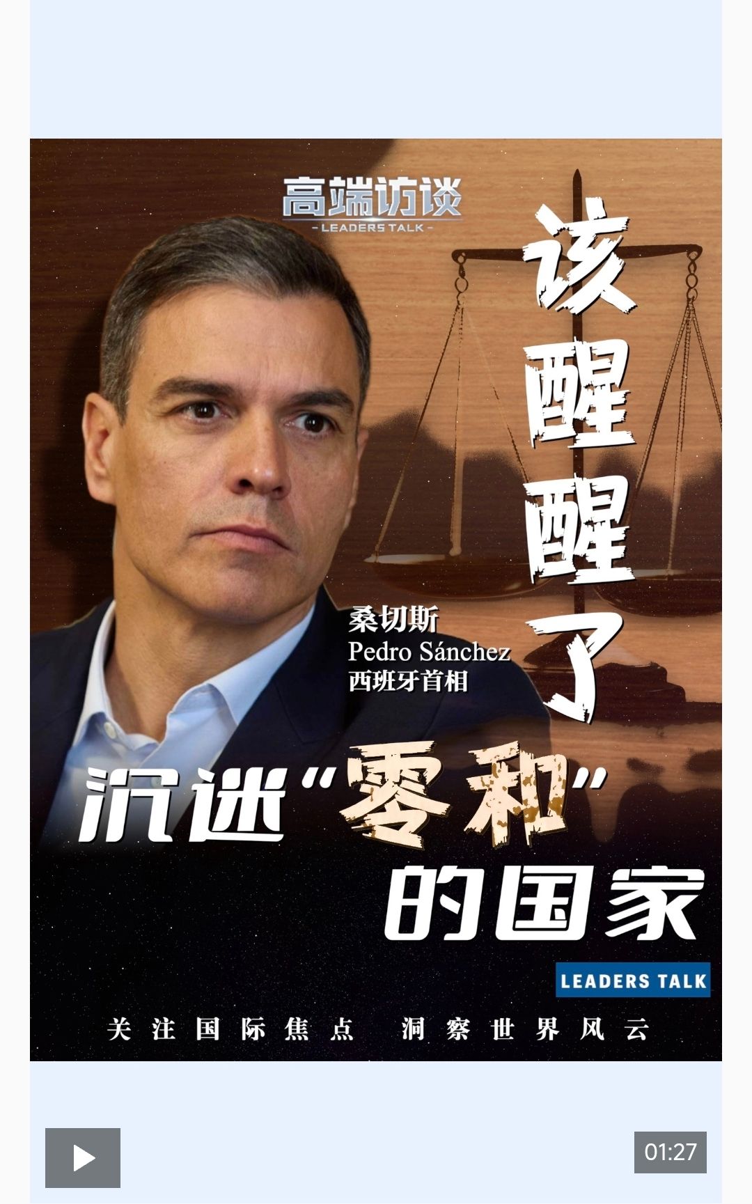 高端访谈丨西班牙首相桑切斯:沉迷“零和博弈”的国家该醒醒了