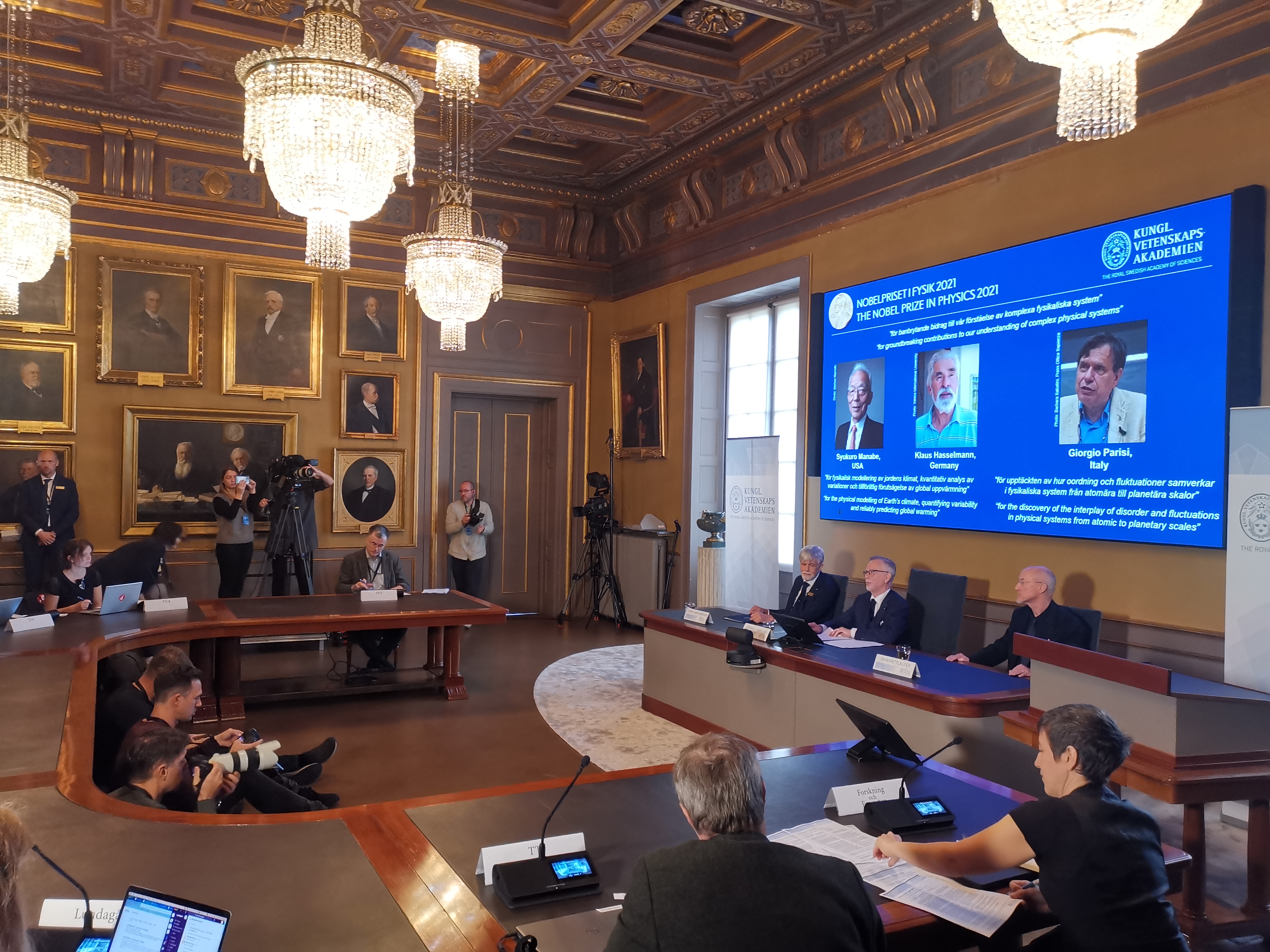 (北欧时报 新译科技斯德哥尔摩讯 记者Robin Ho、通讯员Tianhao M)瑞典当地时间10月5日上午11点45分,瑞典皇家科学院举行新闻发布会,公布本年度诺贝尔物理学奖颁发给美国、德国、意大利三位科学家,获奖理由是“对我们理解复杂物理系统的开创性贡献”。