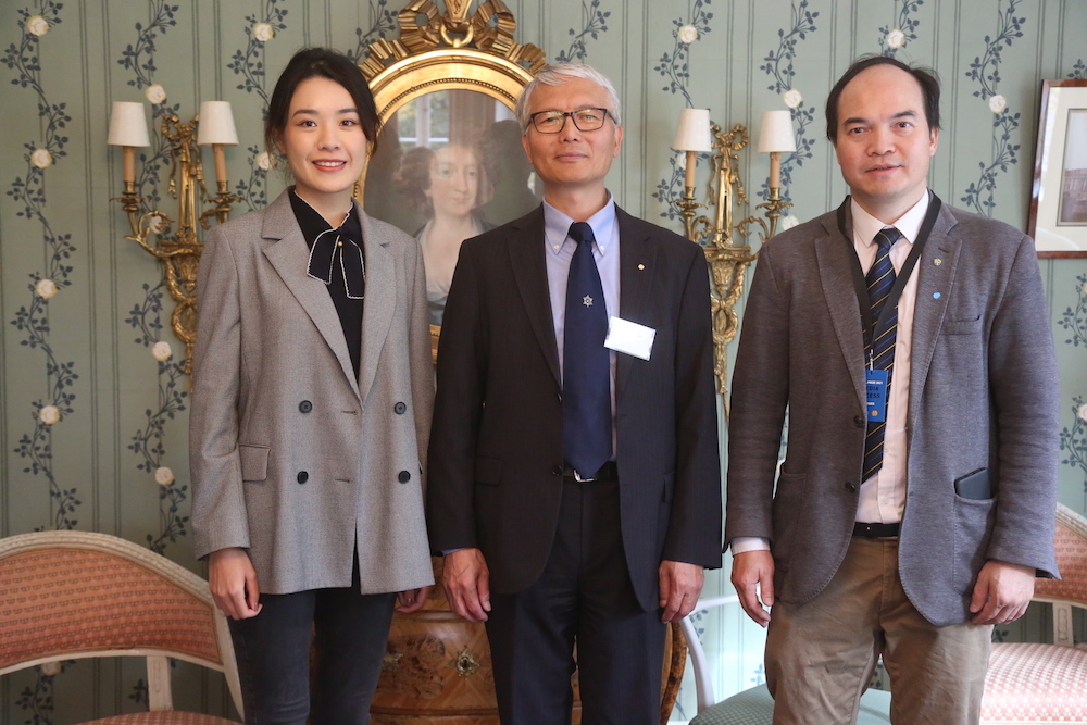 北欧时报记者专访后与瑞典皇家科学院陈德亮院士(中)合影留念/北欧时报