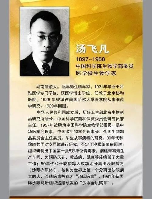 汤飞凡又名唐兆瑞,中国真正的第一代医学病毒学者,迄今唯一一名发现世界上最重要的病原体的中国人,他的医学贡献拯救了无数中国人。