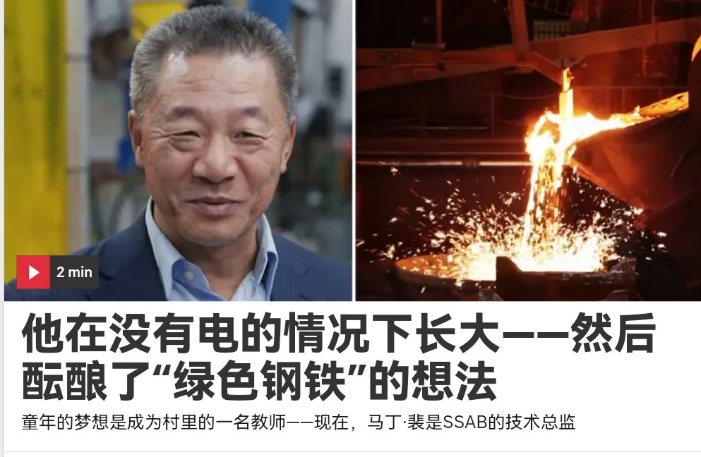 这是一项全世界都能从中受益的技术。瑞典钢铁巨头SSAB集团的技术总监裴文国在纪录片《绿色种族》中表示,我小时候做梦也想不到有这样的成果。