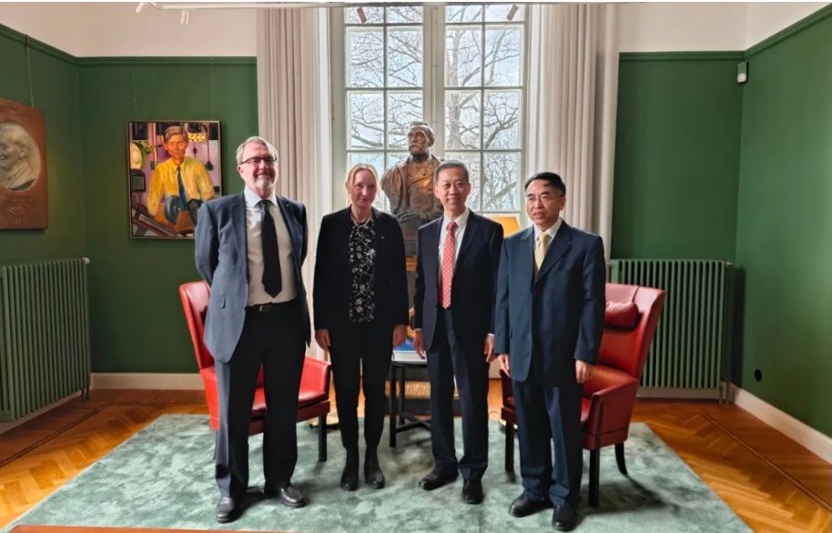 2024年4月4日,驻瑞典大使崔爱民会见瑞典皇家科学院院长诺玛克,就加强中瑞两国科研人员交流和科技创新合作交换意见。使馆负责科技事务的参赞崔玉亭参加了会见。