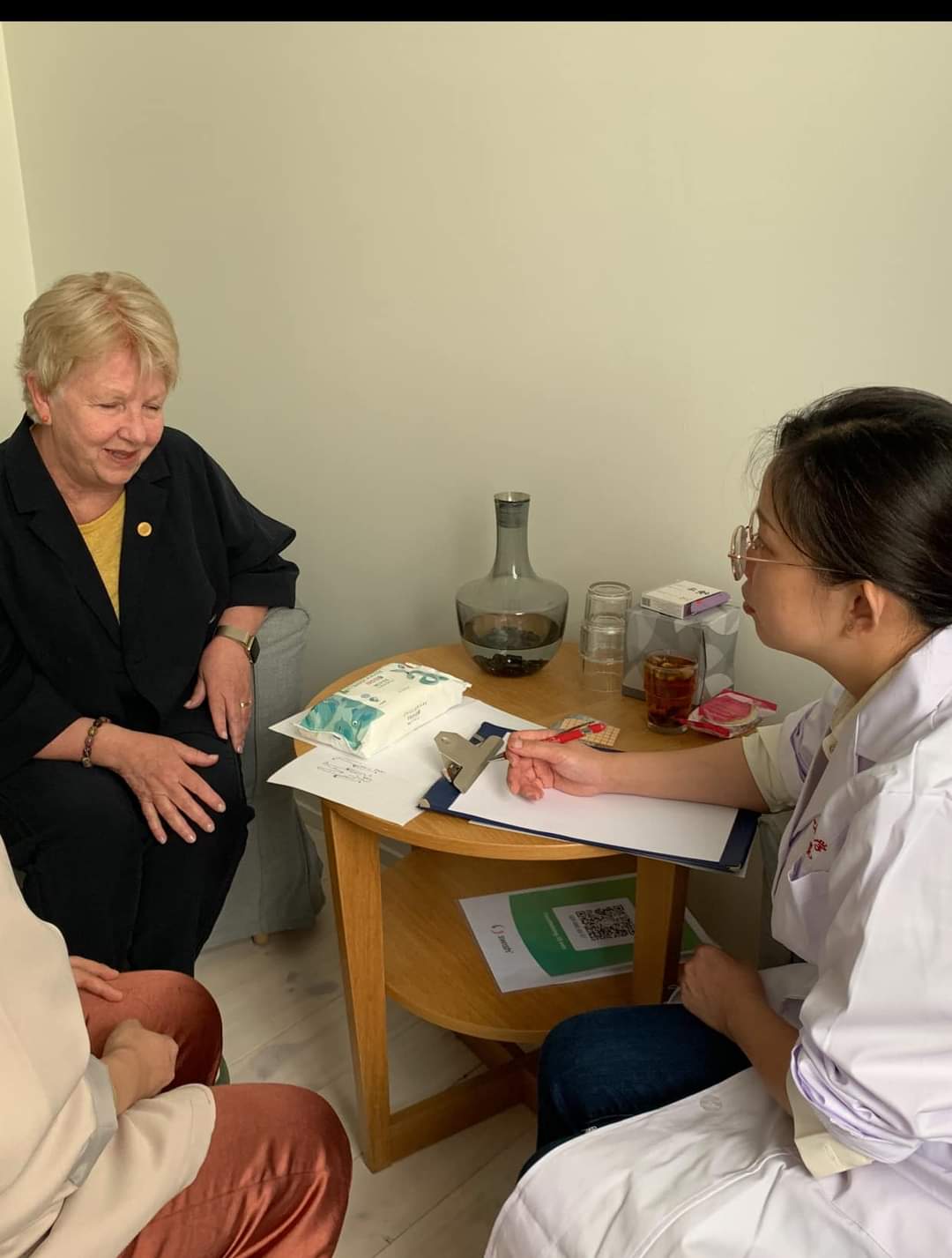 江西中医药大学附属医院的中医专家李芳教授在义诊時用她精湛的医术进行一对一的诊疗和健康咨询最受欢迎!她热心地对每位参加义诊的瑞典民众进行诊治并对提升健康状况和治疗疾病作出个性化医嘱,受到与会代表们的赞誉!