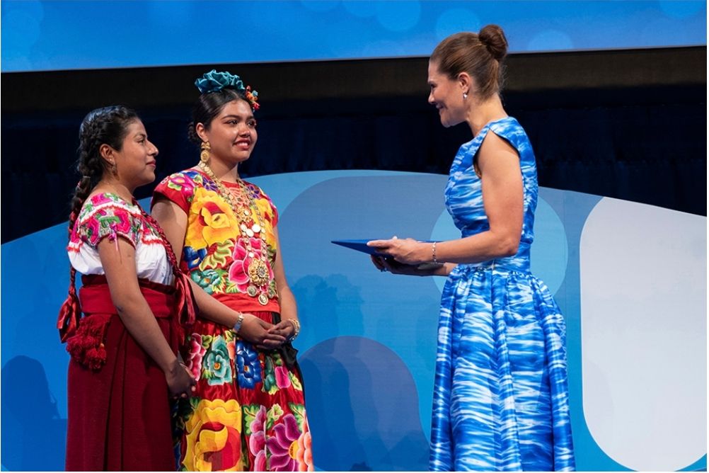 来自墨西哥的Valeria Mora Fajardo和Rosa Mendoza Sosa获得了王储妃颁发的卓越证书。摄影:Jonas Borg