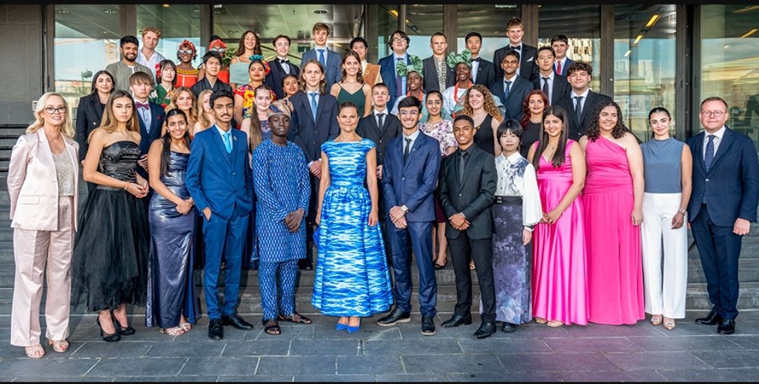 王储妃和SIWI的代表与斯德哥尔摩青少年水奖的决赛入围者合影。摄影:Jonas Borg