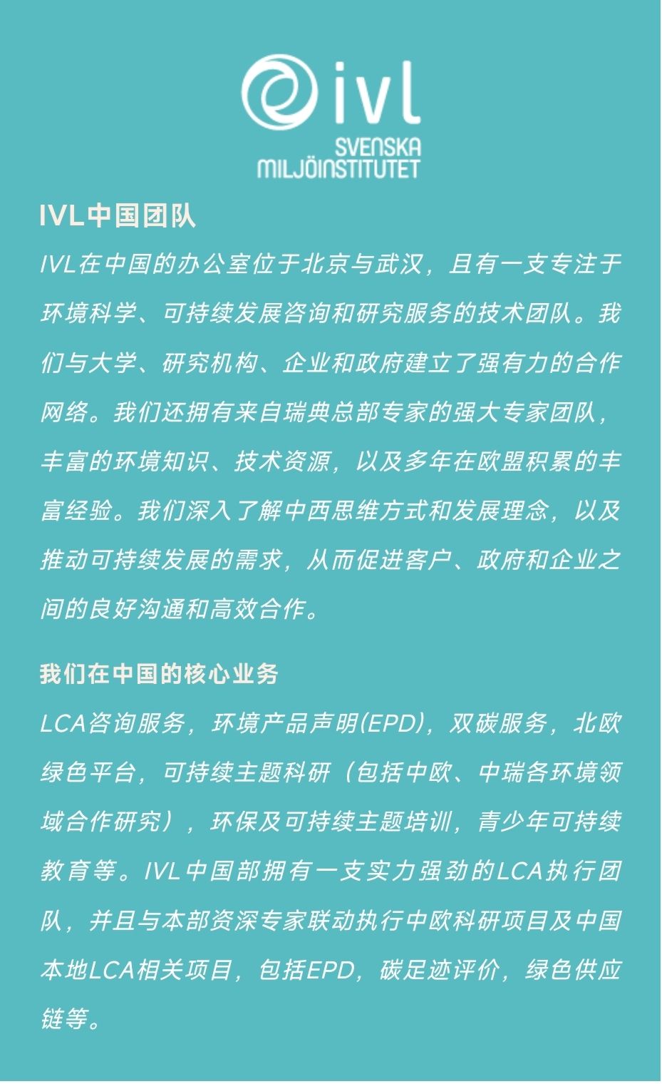 /IVL中国团队 瑞典环境科学研究院有限公司