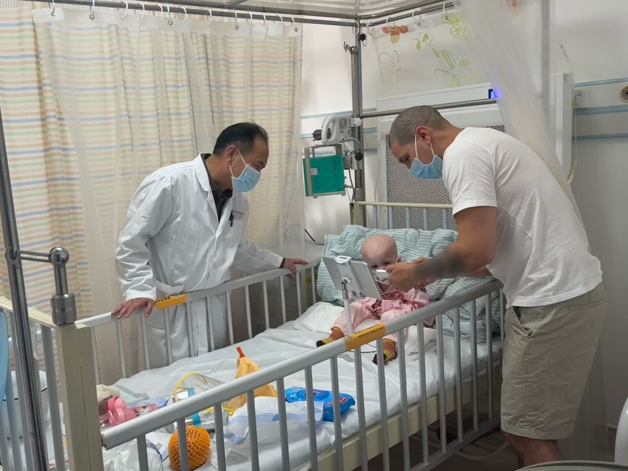 【记者】在病房里,卡洛斯先生和太太正在收拾行李,准备带着女儿艾玛出院。2岁多的小姑娘坐在病床上玩平板电脑,看起来精神不错。回忆起从9月26日入院到今天,这短短一个月的时间,卡洛斯十分感慨: