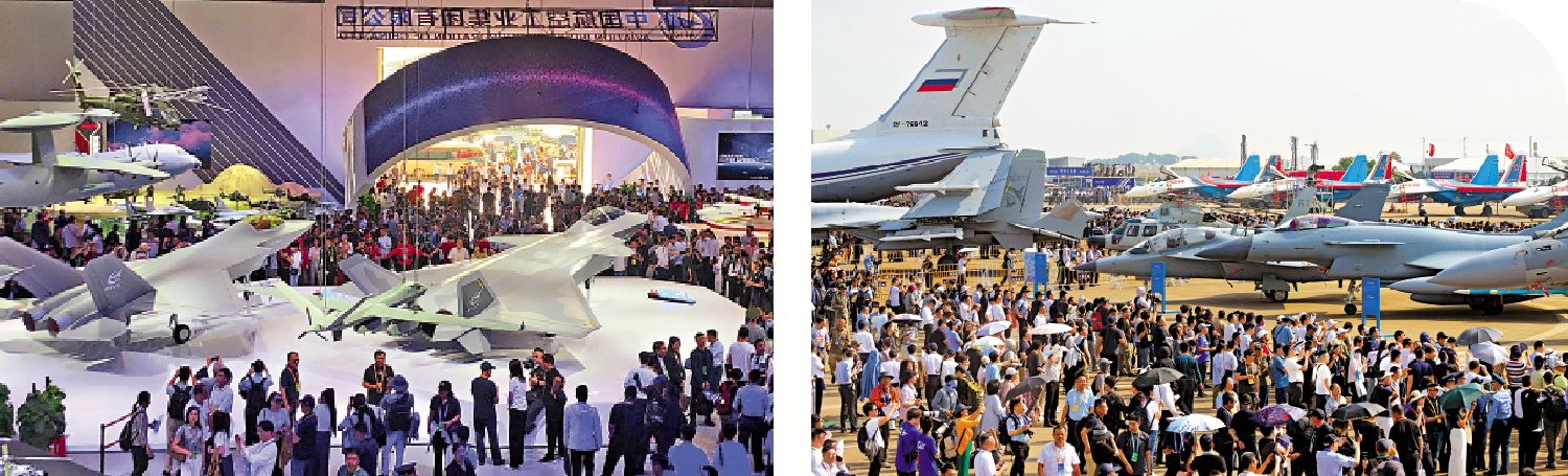 進入今年第十五屆珠海航展,已成為中企展示防務、安全與和平利用太空等高科技領域最新成就的舞台。除了首次在公眾面前亮相的殲-35A隱形戰鬥機外,殲-20、殲-10C、殲-16戰鬥機,殲-16D電子戰飛機,轟-6K轟炸機,運油-20空中加油機,空警-500A預警機,無偵-7與無偵-10無人機等中國空軍現役主力機型都集聚本屆航展。中國海軍更首次組織實裝參展,多型現役裝備以靜態或動態方式首次公開亮相;期間派出殲-15D艦載電子戰飛機、殲-15T艦載戰鬥機、直-20J艦載直升機、直-8C運輸直升機進行飛行表演,展示反區着艦、夥伴加油等飛行課目。
