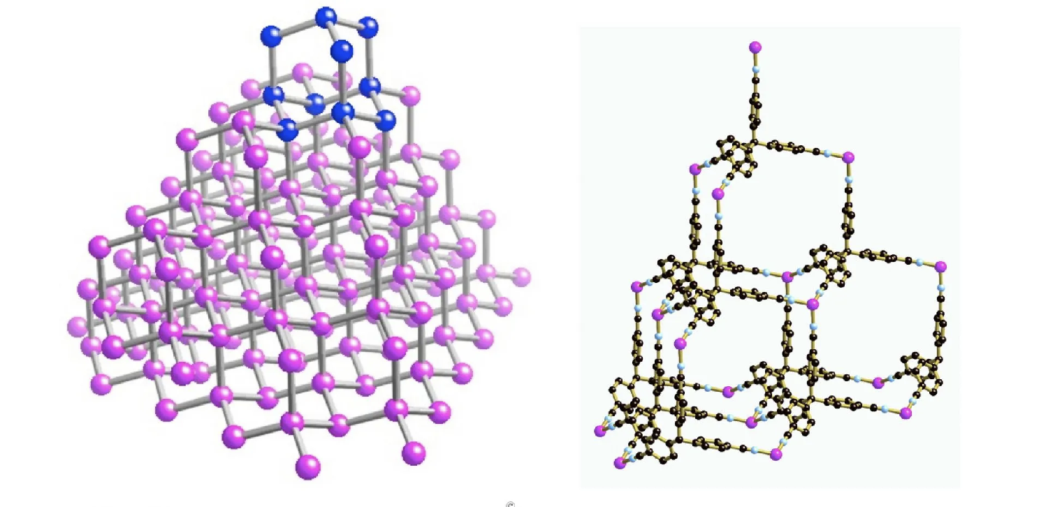 左边是钻石结构。右边是铜I-四腈骨架,具有相同的结构,但在骨架内部引入了大量空间。(图/参考文献)