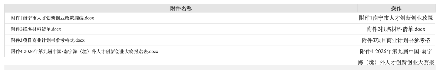 中国·南宁海(境)外人才创新创业大赛于2018年设立,通过初选、海内外预赛、南宁决赛和项目对接等环节,吸引全球海(境)外人才来南宁创新创业,促进科技成果落地转化。大赛为人才和项目落户南宁提供项目资助、产业对接、融资对接、离岸孵化等服务,为推荐项目参赛的组织和机构提供奖励。为加快建设面向东盟开放合作的国际化大都市,进一步推动人才创新创业与南宁市高质量发展,计划举办“2026年第九届中国·南宁海(境)外人才创新创业大赛”,现将大赛有关安排通知如下。