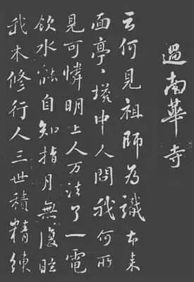 宋绍圣元年(1094),已经59岁的苏轼被人诬陷诋毁先朝,被贬往惠州。在外放的途中,他首次访问了南华禅寺。苏东坡在这里见到了六祖的真身,惠能神色安详,端坐于佛龛中。他在祖师面前顶礼膜拜,不禁泪如雨下,感慨万千,写下《南华寺》诗: