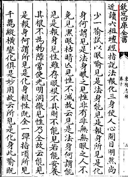 自从礼拜六祖真身写下《南华寺》一诗以后,苏东坡开始去思考佛禅的真谛,其佛禅思想日趋圆融,并且融汇于自己的思想当中,从而获得了精神上的自由,思想也臻于至境。作为禅宗六祖的信徒,《六祖坛经》自然是其经常研读并且体悟的经典,《东坡志林》载:近读《六祖坛经》,指说法、报、化三身,使人心开目明。然尚少一喻;试以眼喻:见是法身,能见是报身,所见是化身......