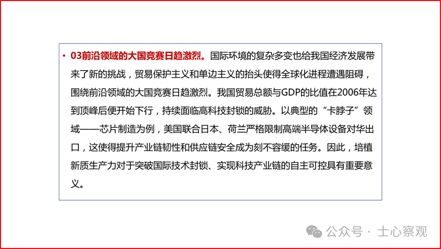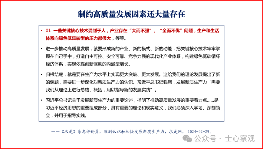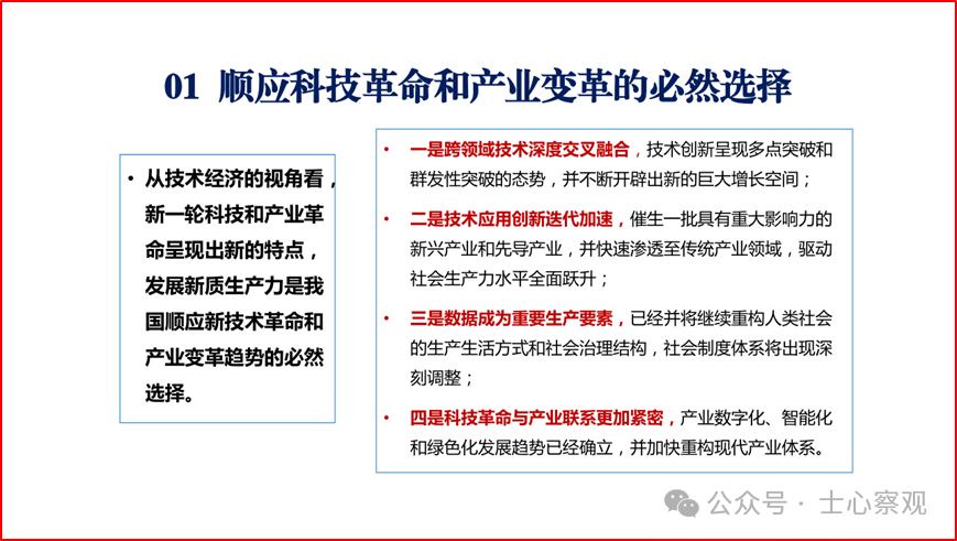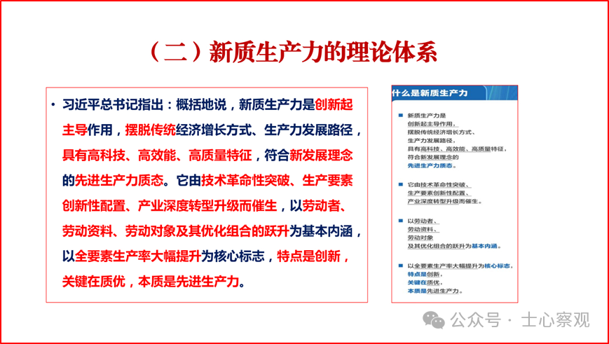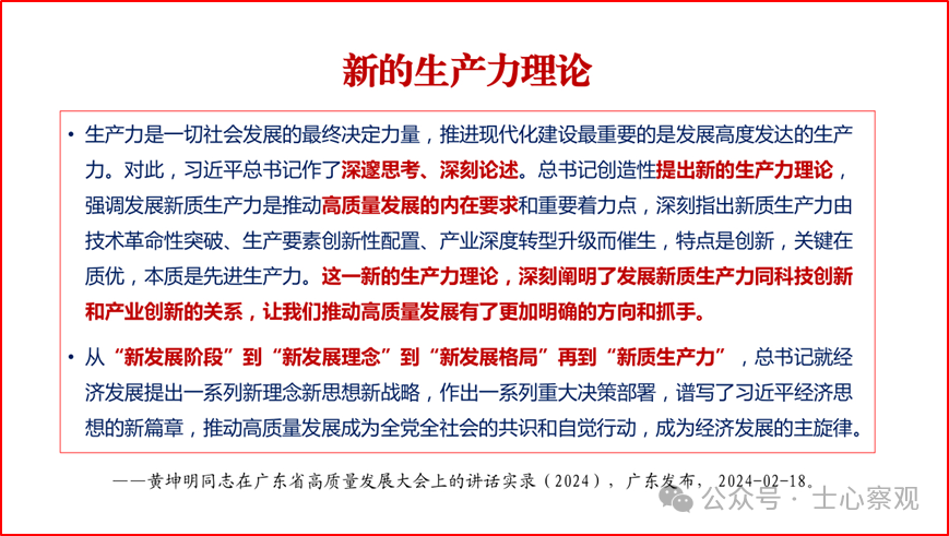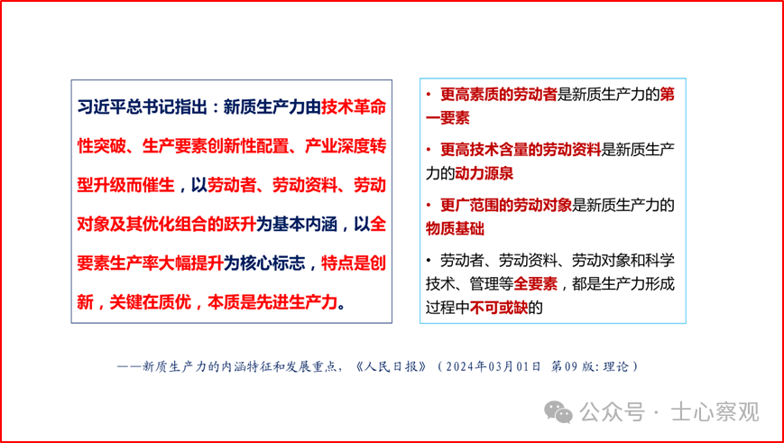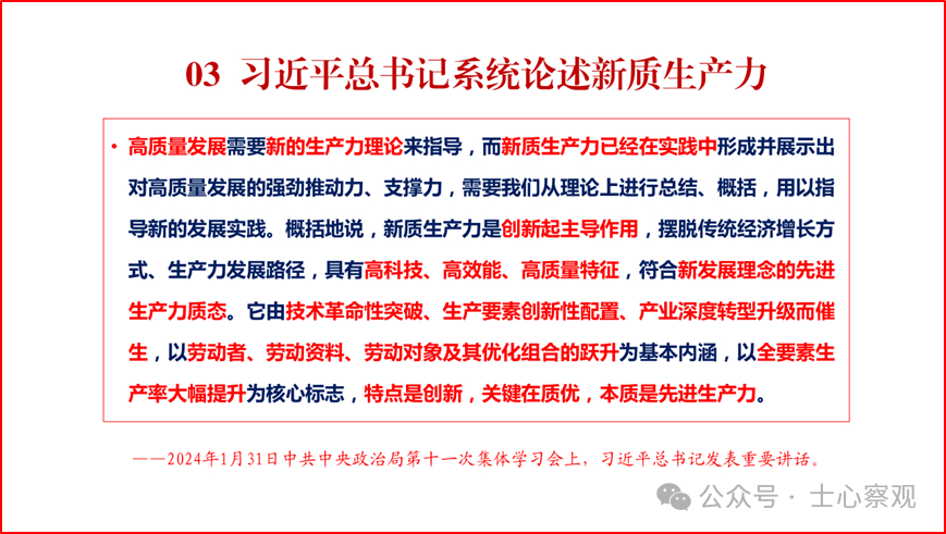 目前,全国上下都在深入学习贯彻落实习近平总书记关于新质生产力系列重要讲话精神,并因地制宜把创新升级和高质量发展落在实处。在学习贯彻落实过程中,各地各部门各行业结合本地本部门本行业的实际情况,深刻领会、制定切实可行的政策措施、工作计划、具体举措。随着对新质生产力认识的不断深入和实践的不断拓展,我们相信,在新质生产力理论的引领下,一定能够实现更高质量、更有效率、更加公平、更可持续的发展,为国家强盛、中华民族伟大复兴奠定坚实基础。这里作者特将2024年4月18日在第二届“天府期刊”创新与发展研讨会上,作的有关深入贯彻落实习近平总书记新质生产力系列重要讲话精神的主旨报告的部分PPT内容分享给大家,希望互相交流学习。