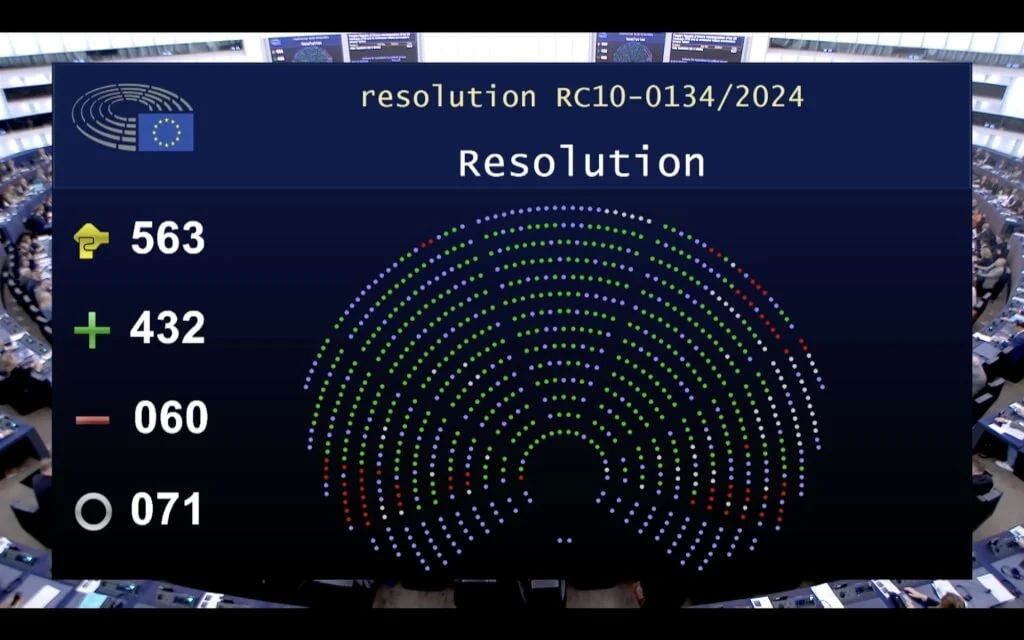 在上周四的欧洲议会会议上,这项决议以432票赞成、60票反对、71票弃权的绝对多数通过。决议名为“欧洲议会关于中华人民共和国对联合国第2758号决议的误解及其在台湾周边持续军事挑衅的决议”。