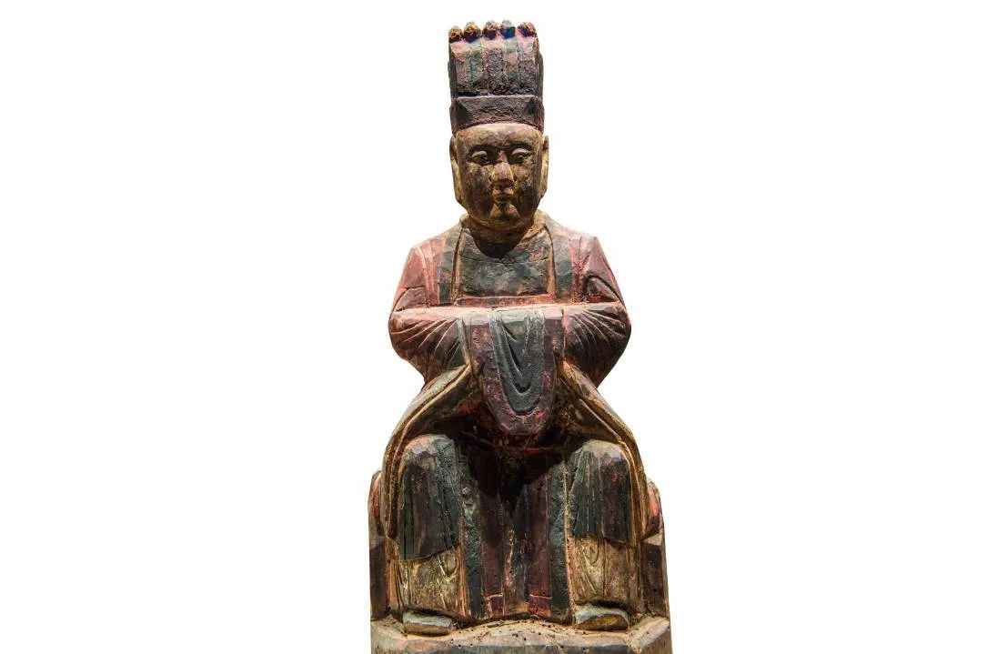 ▲ 清代木雕彩绘灶王像,藏于成都博物馆。摄影/Panda