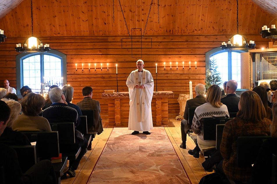 Martin Modéus大主教在Sälens fjällkyrka主持了晨祷仪式。摄影:Mikael Stjernberg/瑞典教会Ärkebiskop Martin Modéushöll morgonandakt iSälens fjällkyrka.Foto:Mikael Stjernberg/Svenska kyrkan