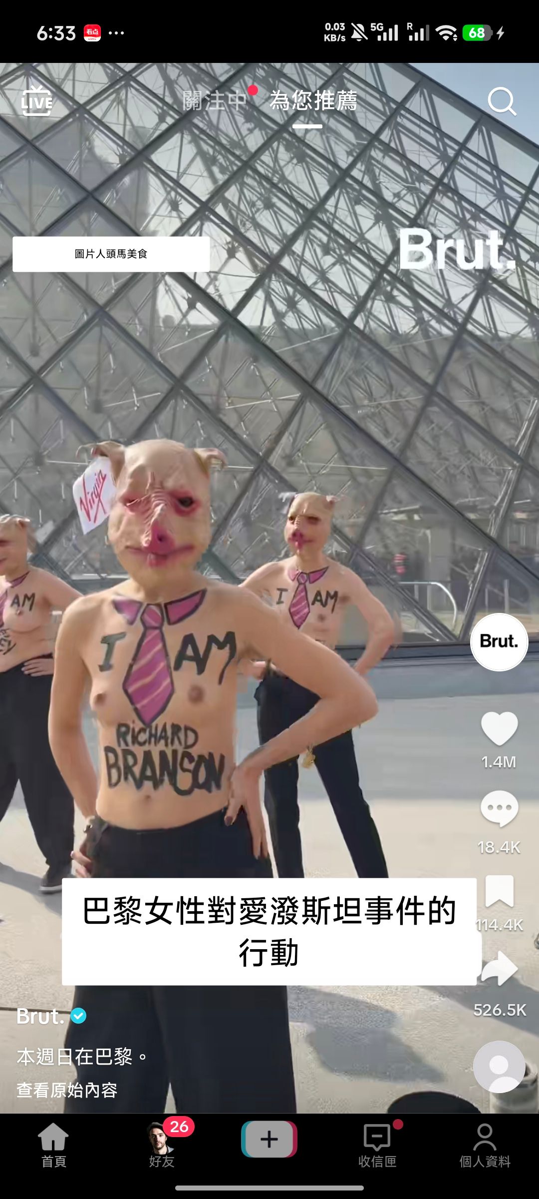世界艺术与文明的象征之地,一群女性赤裸上身,头戴猪头面具,在阳光下列队而立。她们的身体上写着一个个名字——Jeffrey Epstein、Ghislaine Maxwell,甚至包括部分仍在公众视野中的精英人物。