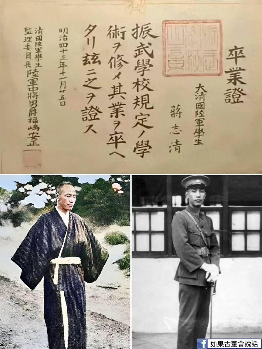 這是115年前,蔣介石的「軍校畢業證書」,畢業去日本軍隊餵馬