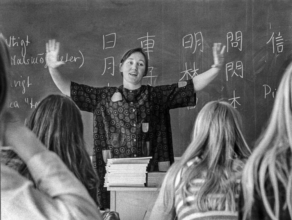 林西莉女士精通讲故事的艺术。作为作家、演讲者和教师,她总是能够让观众“走心”,不论探讨的主题是语法、汉字的起源、农村女性的处境或是古代弦乐器。巧妙的小细节和有趣的题外话永远不会缺席。她曾在瑟德拉丁高中任教多年。课堂上,她会用肢体语言来表现汉语的四种音调,不仅用双手,而且是用整个身体说明音调是如何由上而下或急转直下的。她很清楚,这对于巩固学习很有帮助。作为学生,我们并没有考虑太多,但她确实非常擅于教学。后来,她在大学教授我们中国文学时,这一点体现得更加淋漓尽致;她的课堂一如既往地生动有趣,轻松愉快。