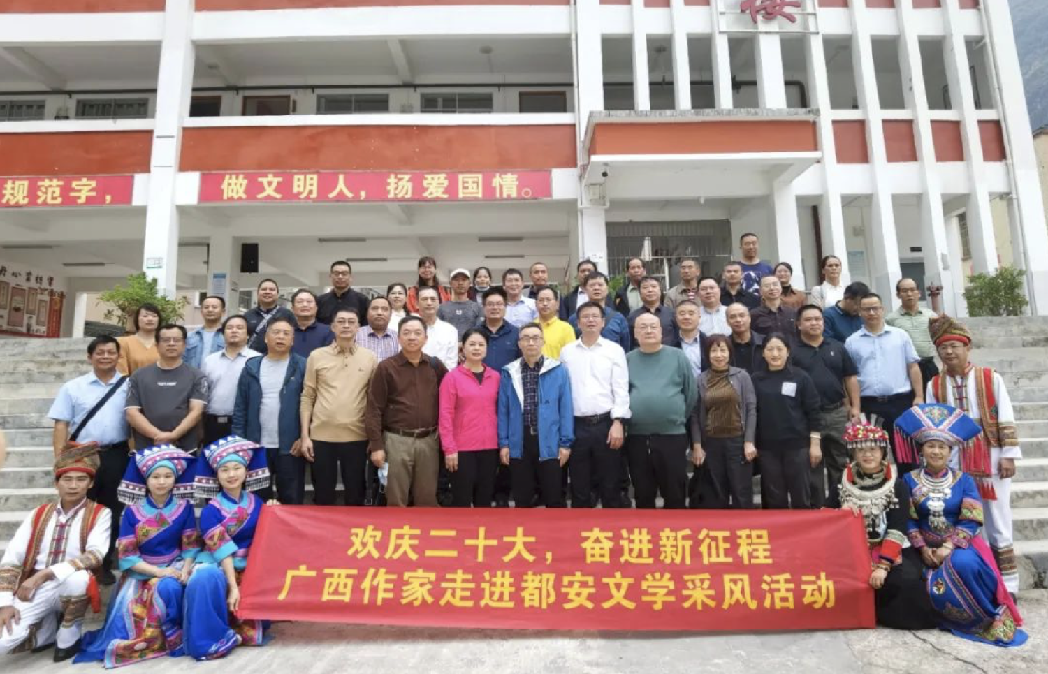 2022年10月19日至21日,《广西文学》“重返故乡”采风创作活动专程到作家凡一平故乡都安瑶族自治县菁盛乡上岭村举行,主办方在他老家门口挂上了一块“作家之家”金字牌匾,上岭村从此成为载入史册的“作家村”。这是属于凡一平老师该有的殊荣,我替他感到高兴,忍不住在酒桌上多敬他喝了一大杯“都安王老吉”。