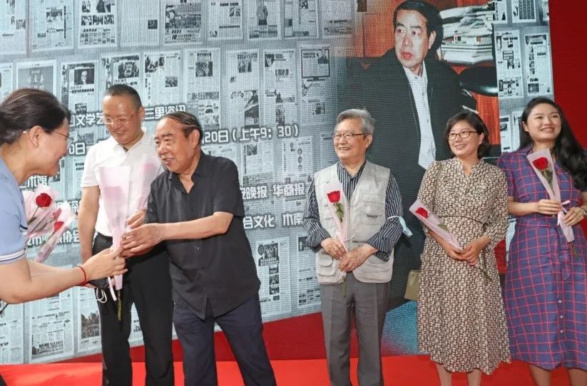开幕式上,尤其温馨的是贾平凹老师表示,这些报纸记载了一个时代,也记载了一个作家几十年的过程,深深地感激媒体朋友们。在开幕式的最后,在这个当下年青人定义的表达爱意的“520”这一天,贾平凹为曾经的风雨兼程、一路相伴的文化记者们送上表达谢意的鲜花,致敬每位媒体人。