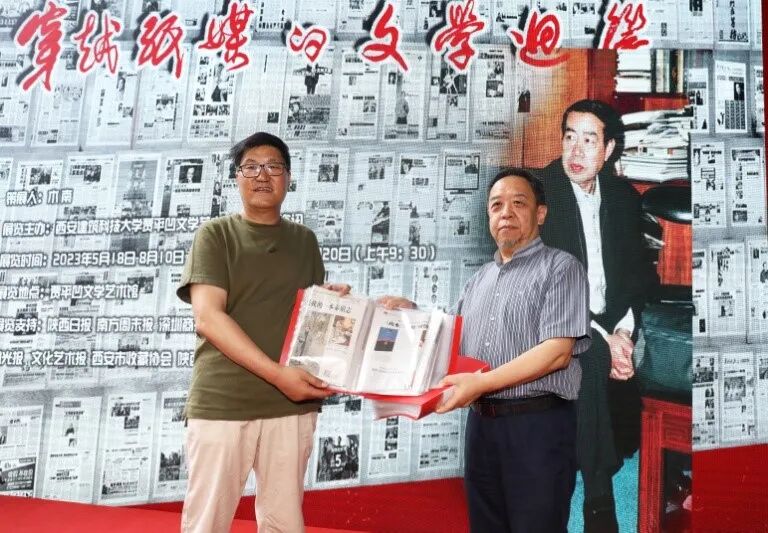 开幕式上,陕西省作协秘书长王晓渭代表陕西文学馆接受木南捐赠的100份贾平凹报道报纸藏品,并向贾平凹文学艺术馆和木南回赠收藏证书;西安市收藏协会会长马新民向贾平凹先生赠送《快乐长寿》。据悉,此次展览作为贾平凹文学创作50周年的系列活动之一,将持续展至8月10日,期间免费面向公众开放。
