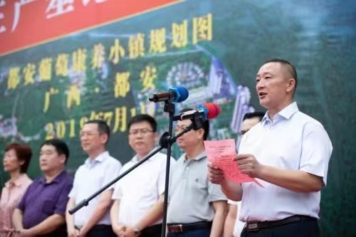 都高(都安高中)百年校庆,启录穿着没系腰带的中裤和拖鞋跟西装革履的都高校长蓝志标形成鲜明的对比,他俩各站一边托着一块书写捐款一百伍拾万元牌子的雷人图片,一时间在微信朋友圈炸开了锅。对于启录的这一穿着,网友们的留言贬褒不一,毕竟林子大了什么鸟都有。后来我的一条回复倍受关注:“韦启录先生为了捐一百伍拾万元,目前只剩下短裤和拖鞋了。”启录见后笑而不语。