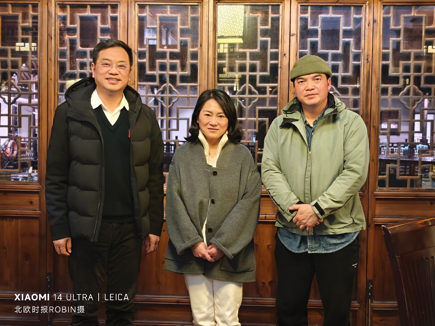 上图:嘉兴市桐乡乌镇侨联胡春玫同志(中)亲切接见并合影留念。左为意大利侨网老总吴敏,右为北欧时报社长何儒。