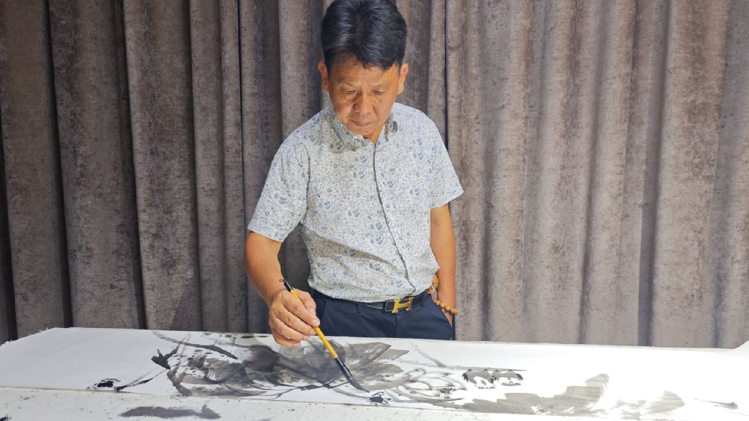 一日,山人至罗秀山下,见其地泉甘草茂,石秀林幽,乃筑庐其间,以耕以画,以荷以鹤为伴。每晨曦初照,则持锄荷锹,植莲养鱼;每日暮西沉,则焚香静坐,挥毫作画,笔下白鹤栩栩如生,意态翩然。风雨无阻,寒暑不辍,久之,鹤影翔于纸上,荷香漫于山谷,天地为之动容,百鸟来朝,仙气弥漫。