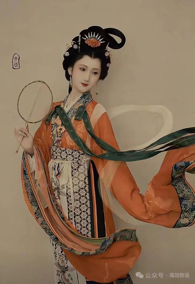 “美女如云”’,这是现今描写街上的词,但街上的美女有云一样的多,却没云那样的轻盈和简淡。我们也常说“唐女肥婆”,甚至怀疑杨玉环是不是真美?壁画中的宫女个个个头高大,耸鼻长目,丰乳肥臀,长裙曳地,仪表万方,再看那匹匹骏马,屁股滚圆,四腿瘦长刚劲,便得知人与马是统一的。唐的精神是热烈,外向,放恣而大胆的,他的经济繁荣,文化开放,人种混杂,正是现今西欧的情形。我们常常惊羡西欧女人的健美,称之为“大洋马”,殊不知唐人早已如此。女人和马原来是一回事,便可叹唐以后国力衰败,愈是被侵略,愈是向南逃,愈是要封闭,人种退化,体格羸弱。