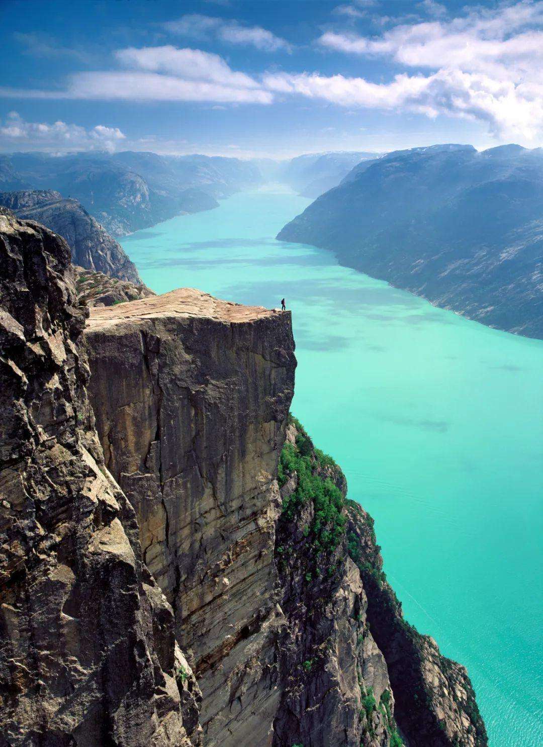 布道石者,北欧奇观,屹立于挪威的吕瑟峡湾(Lysefjorden)。方台平整,直插云霄,海水在下奔涌,光影在上变幻。此石如舞台,如圣坛,仿佛等待古老的牧者在此布道,将信仰与大地、人与自然融为一体。每当旭日东升,峡湾碧水宛若翡翠,石台边缘的人影,映衬着天地之辽阔,诉说孤勇与自由。