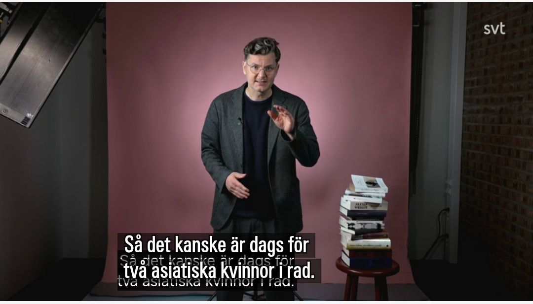 Om man istället inte väljer att attackeraämnet som en Olof Lundh påjakt efter en startelva inför en viktig landskamp.Problemet med detär brist påkällor(numera)och att typ hälften av akademiledamöterna gått påtolkskolan.Dåstår man istället där med ett fuktigt finger i luften och leker kremlolog:”Var det inte ovanligt många ledamöter påtyske dramatikern Roland Schimmelpfennigs seminarium påbokmässan?”