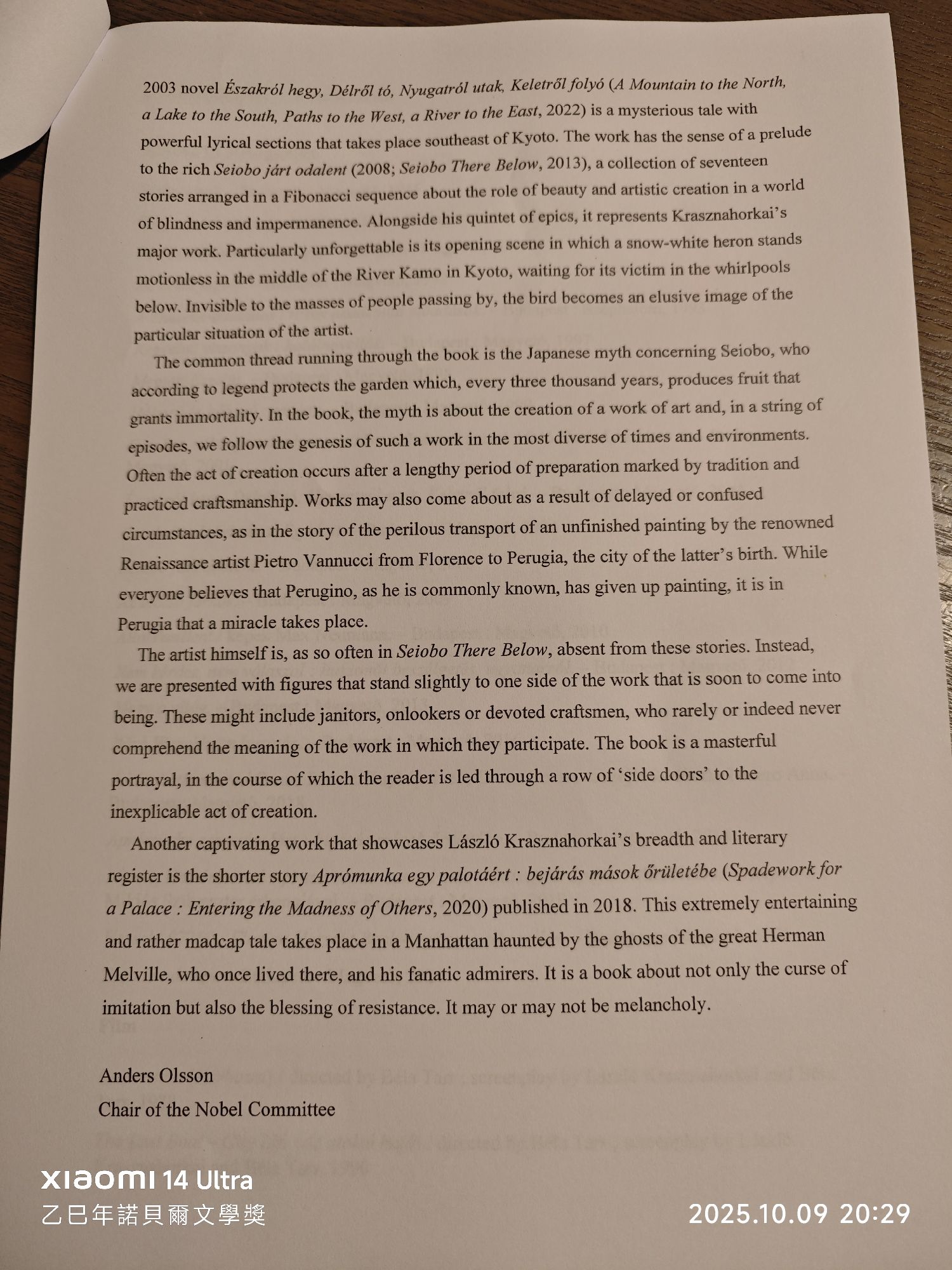 Hansson,Cecilia,“LászlóKrasznahorkai:verkligheten var inte viktig för oss”your Hopplöst,men inte allvarligt:konst och politik i Centraleuropa.–斯德哥尔摩:自然与文化,2017