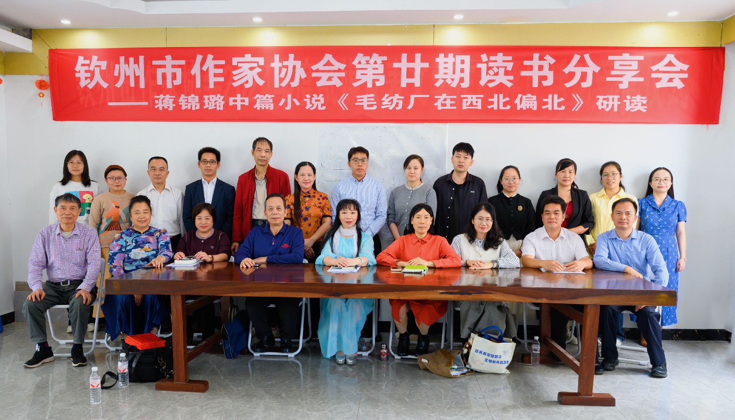 编者按:当西北偏北的毛纺厂机器声穿越岁月,当毛线的纹理缠绕起几代人的青春与命运,锦璐的中篇小说《毛纺厂在西北偏北》以其浓郁的时代质感与深沉的人文关怀,成为文学界热议的焦点。2025年11月16日,钦州市作家协会第廿期读书分享会聚焦这部获奖佳作,来自钦州文坛的十三位创作者与研究者齐聚一堂,从语言肌理、叙事智慧、意象象征、主题内涵等多元视角展开深度研读,碰撞出思想的火花。