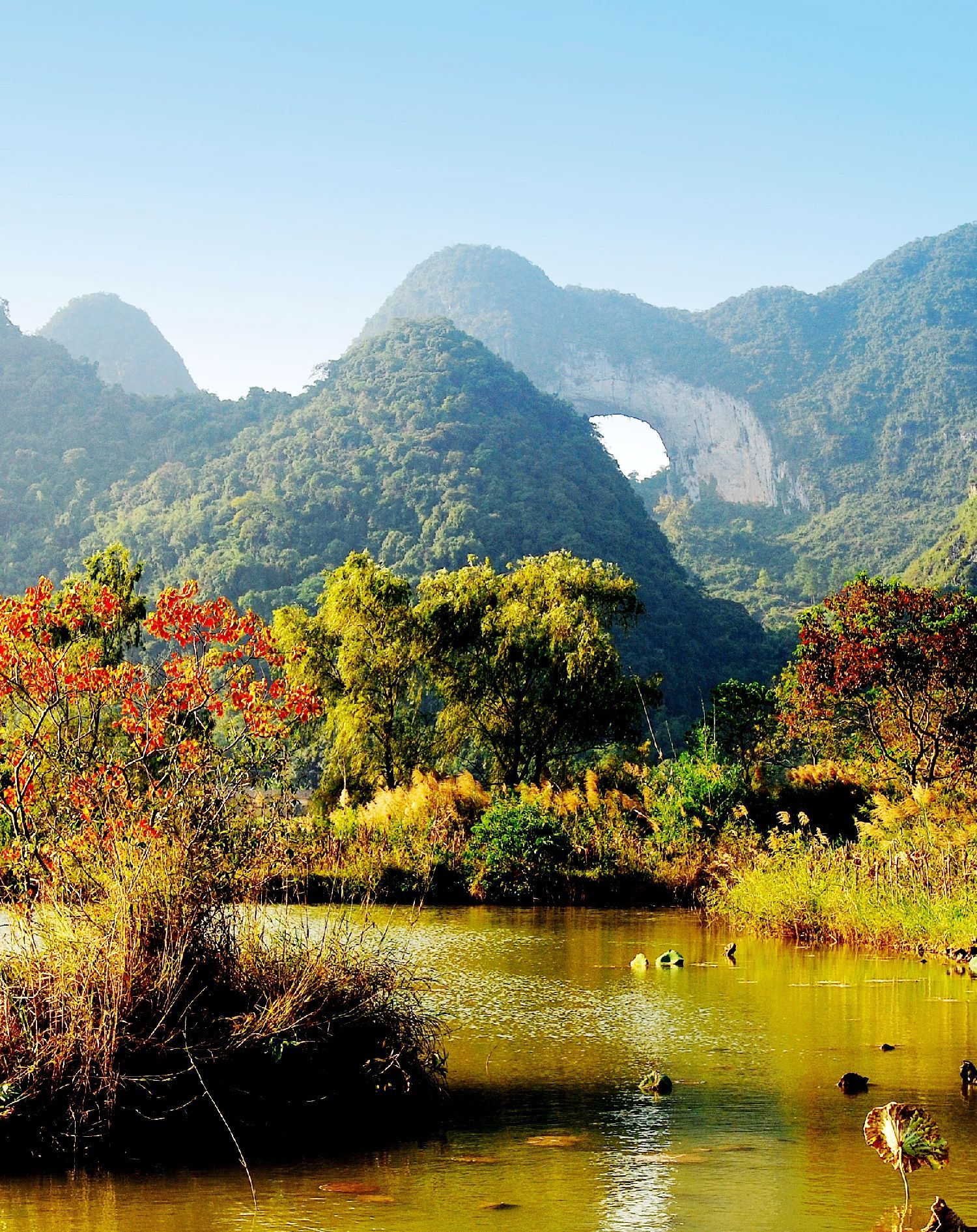 Luocheng’s landscapes often share this fate.Rivers like the Wuyang and the Jian are as clear and graceful as any in Guilin,yet they lie hidden in the countryside,untouched by algorithms and trends.