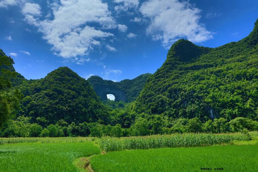 人们习惯顺口称它为“月亮山”。这个名字并不新鲜,甚至有些讨巧。阳朔那座月亮山,早已在流量、镜头与标签中完成了它的“成名礼”。同样是喀斯特地貌的造化,同样的天然洞门与视觉震撼,却走向了截然不同的命运。