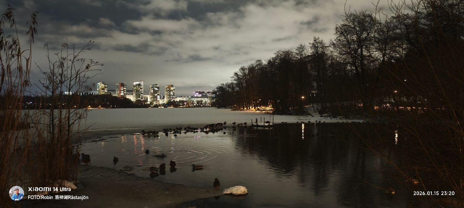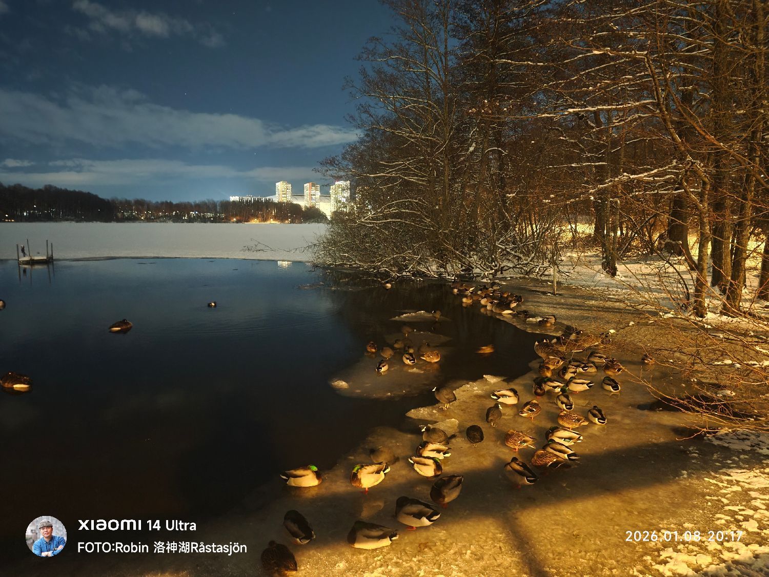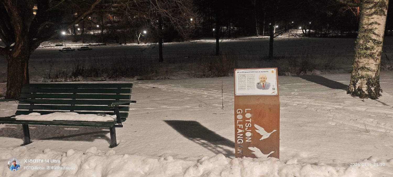 Efter snön vid Råstasjön(洛神湖)–Hermelins sjö och Lötsjön(罗斯湖) i vinternatten