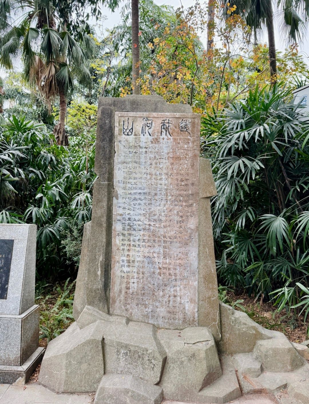 白鹤楼前,立“还我河山”石碑引人注目。碑文记载:清光绪二十三年订立中英条约,梧州开为通商口岸,英人遂强借鹤冈的建领署,自是名胜之地,夷人聚啸,市民不得窥足者三十余年,民愤骤然。民国十四年夏,广州沙基惨案、香港华人大罢工,梧市学生抗议,英人悉数离境,领署遂阅然一空。民国十七年将事署收复,辟为河滨公园,禁止驻兵。至是鹤冈名胜,市民欢欣,快意登临,从此,鹤冈一洗历史屈辱。如今英国领事署残存,与“还我河山”石碑相对而立,俯仰之间,已为陈迹,但令人热血沸腾!