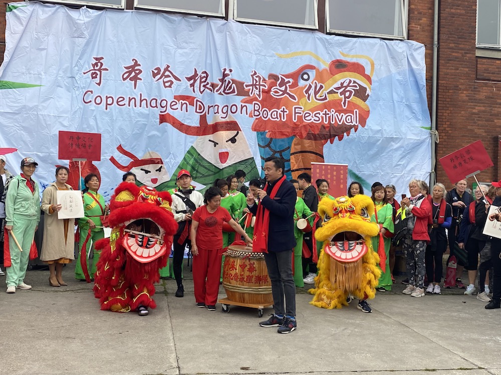 当金牌司仪朱卫星用中英文宣布:“第四届哥本哈根龙舟文化节现在开始!”场上响起了热烈的掌声。