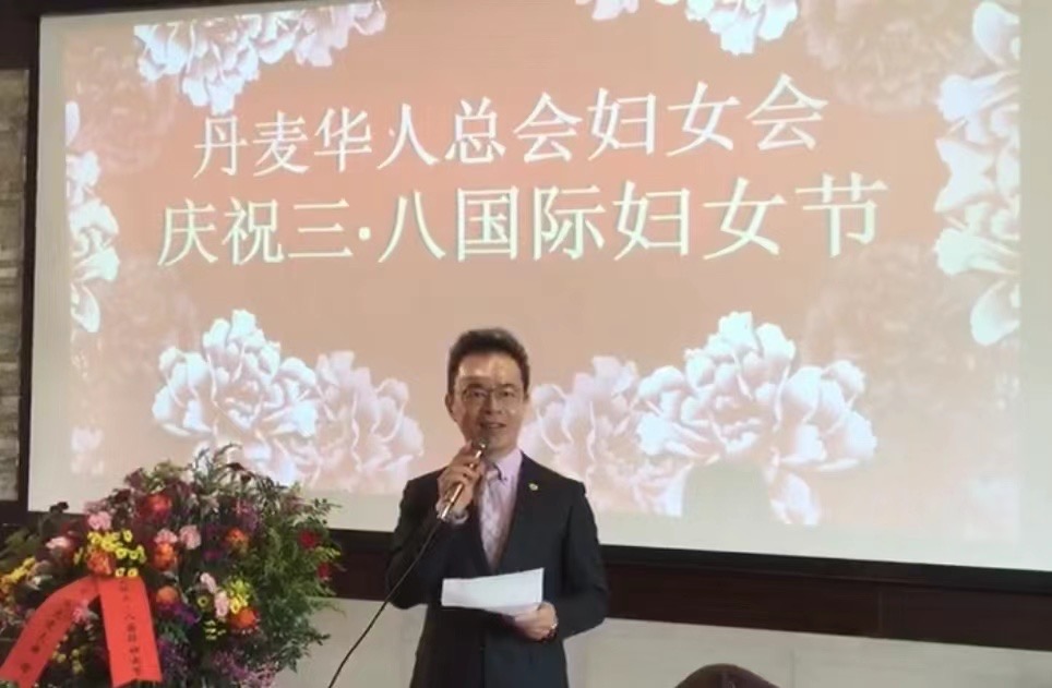 接下来由丹麦华人总会主席林燕标致贺辞,他高度评价了丹麦华人总会妇女会二十年来发扬“三八国际妇女节”的光荣传统,妇女姐妹们在历届会长的带领下,豪情滿怀,飒爽英姿,成了丹麦侨界的一支生力军,他希望妇女会继续成为广大妇女姐妹的“信赖而温暖之家”,并期待更多的妇女姐妹能加入妇女会的大家庭。