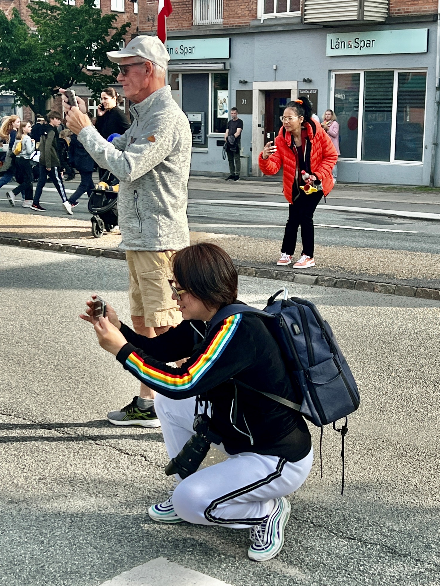 摄影师们、行人们为这支队伍留下了一张张的照片,他们要留住这一张张的笑脸、一个个的倩影、一幅幅的画面⋯⋯要留住这水乳交融的中丹友谊。