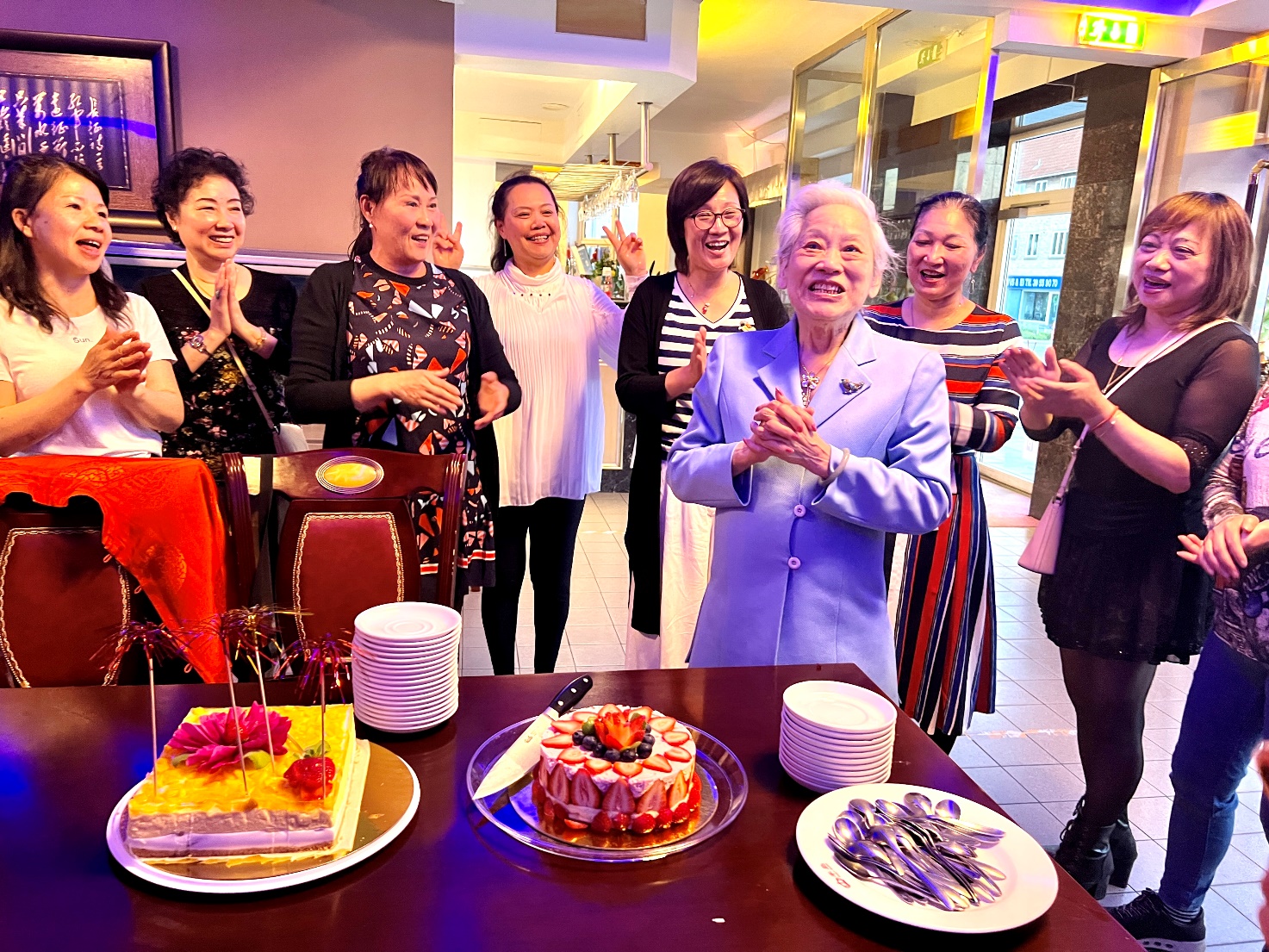 为了庆祝老团员陈德娟的75岁生日,舞队队长阿兰亲手制作了两个漂亮的蛋糕,总会副主席石柒娇亲自将老寿星从Virum接到Søborg。陈德娟再次为大家演唱了“我爱你中国”这支他的最爱唱的歌。大家一起为她唱起了“生日歌”歌声绕梁,又一次见证了友谊地久天长!