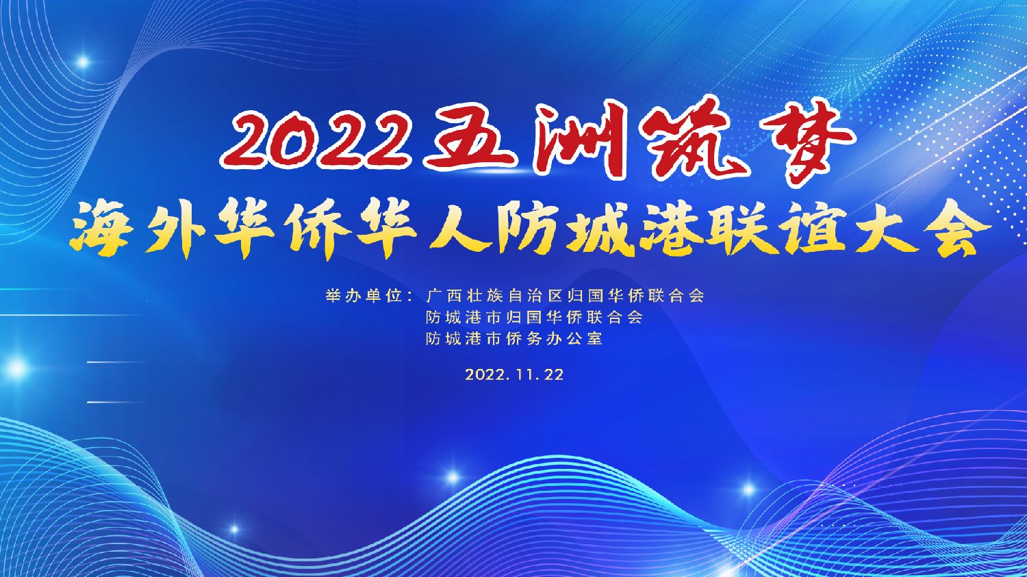 (本报讯)11月22日,由广西壮族自治区归国华侨联合会、防城港市归国华侨联合会、防城港市侨务办公室联合举办的2022五洲筑梦——海外华侨华人防城港联谊大会(已下简称“联谊大会”)在广西防城港市通过线上形式召开。自治区侨联党组书记、主席谭斌,防城港市委常委、统战部部长黎家迎出席大会并致辞。