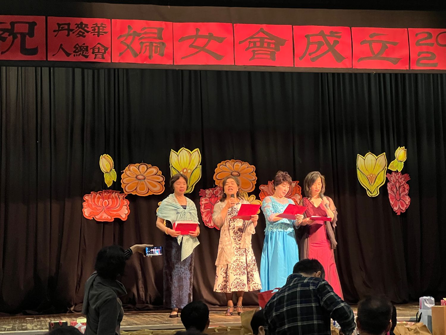 今年司仪的阵容特别强大,名誉会长俞露、陈慧贞、现任副会长李玉珍、石七娇闪亮登场。“山河锦绣,盛世华章;新时代澎澎湃的洪流,奔腾不息;党的二十大胜利召开,更显辉煌;我们意气奋发,迎来了丹麦华人总会妇女会的大喜日子。”四位司仪用中丹文宣布:“庆祝丹麦华人总会妇女会成立二十、二十一周年庆典正式开始!”台下响起了一阵热烈的掌声。