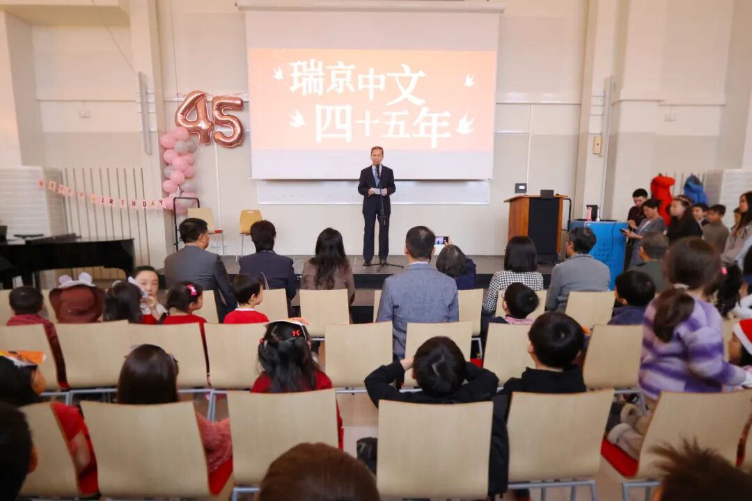 崔大使祝贺瑞京中文学校成立45周年,肯定一代代瑞京人45年来秉持重视教育和传承中华文化的初心,牢记“推进汉语教育、弘扬中华文化”的办学宗旨,积极开展各类教学活动,将学校建设成海外华文名校,并使之成为开展中瑞文化交流、增进中瑞友好的窗口,为孩子们未来发展打造出增长本领和才干的平台。