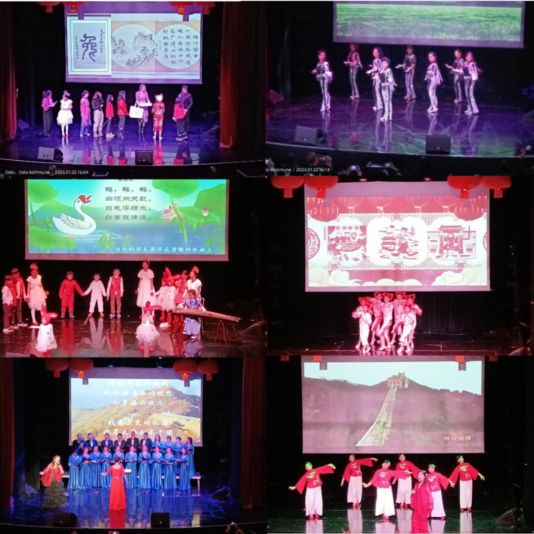 “2023年挪威华人华侨兔年春节晚会”由中国旅挪专家学者联合会牵头举办,各主要侨团、中资企业和留学生共同参加。晚会现场张灯结彩,喜气祥和。歌曲、舞蹈、诗朗诵、古筝表演、小提琴钢琴协奏等节目精彩纷呈,充分展示了中华传统文化,体现了旅挪华人华侨奋发有为、积极向上的精神风貌。晚会在全体大合唱《我和我的祖国》中落下帷幕,侨胞们深情祝愿伟大祖国繁荣昌盛、中挪关系行稳致远。/中国驻挪威使馆
