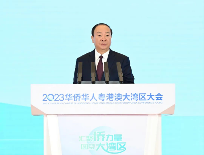 5月17日上午,由国务院侨办和广东省人民政府主办的2023华侨华人粤港澳大湾区大会在江门召开。本次大会以“汇聚侨力量,圆梦大湾区”为主题,来自90个国家和地区的约700名海外侨胞共聚一堂,共叙乡情、共谋发展。省委书记黄坤明,中央统战部副部长、国务院侨办主任陈旭出席主题大会并致辞,香港特别行政区行政长官李家超、澳门特别行政区行政长官贺一诚作视频致辞。省委副书记、省长王伟中,省人大常委会主任黄楚平,省政协主席,省委常委、广州市委书记林克庆出席主题大会。